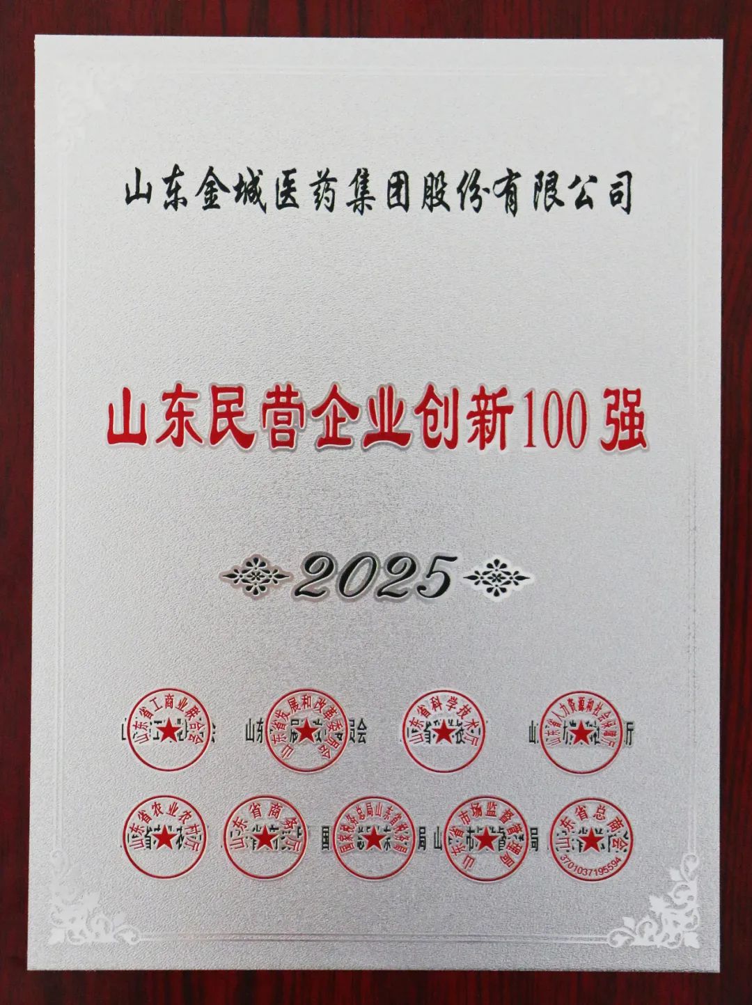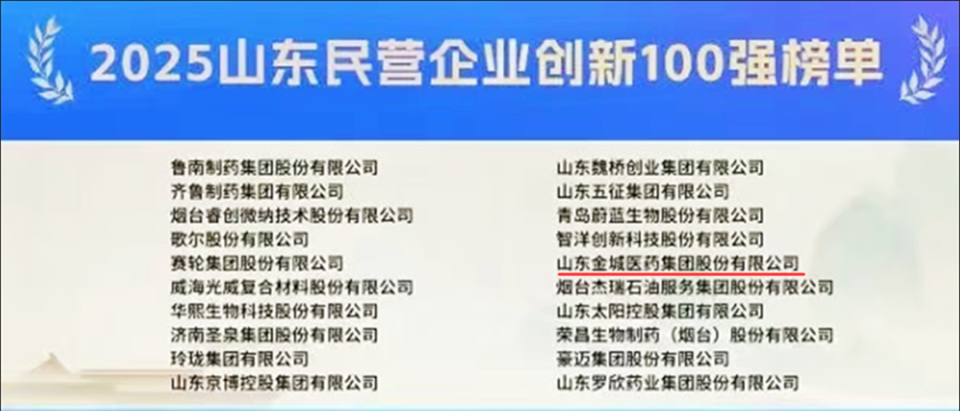 金城醫(yī)藥集團獲2025山東民營企業(yè)創(chuàng)新100強榮譽